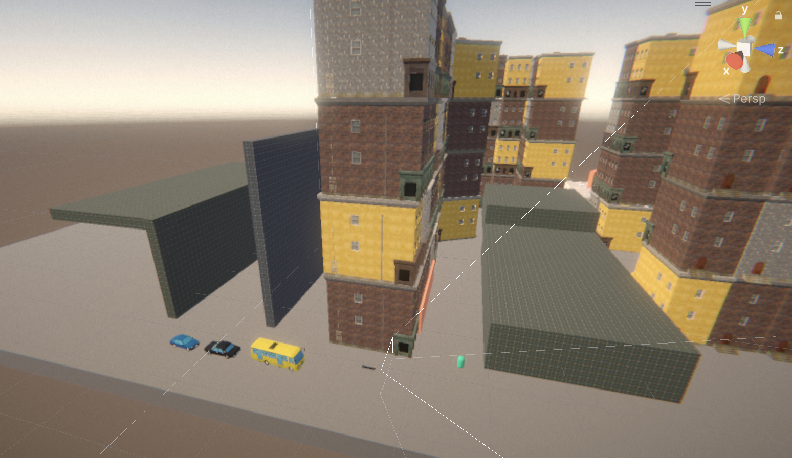 The gym scene, useful for testing out movement and documenting what size gaps/ledges/buildings to use in levels.