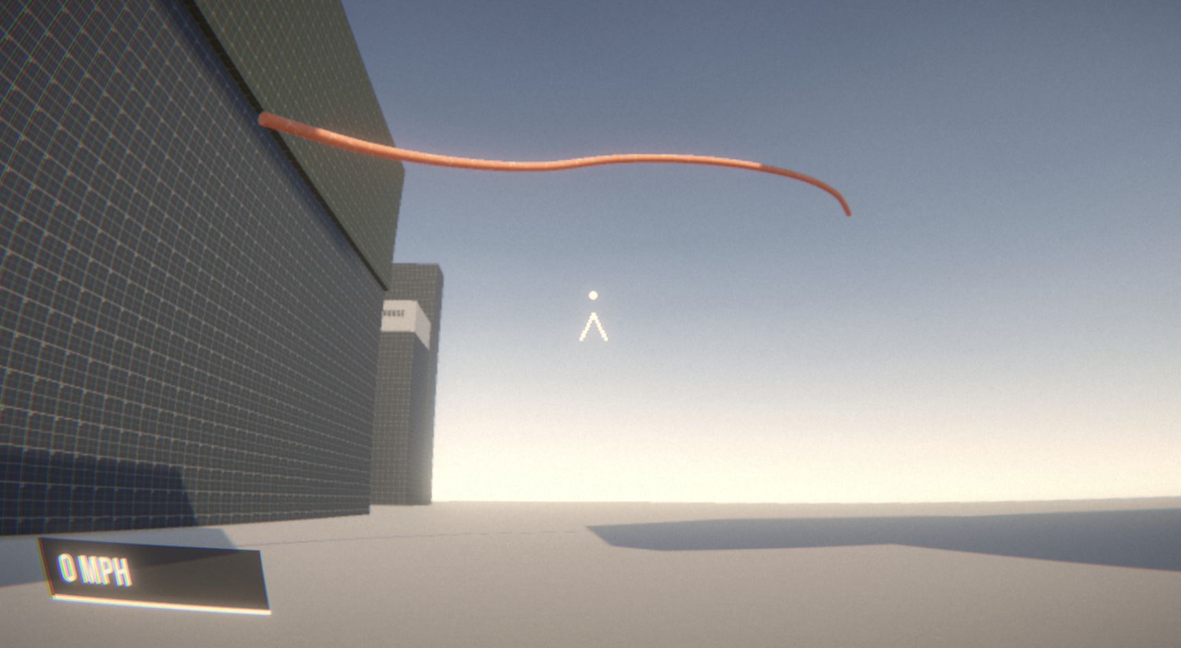 Ultimately, I came up with a more on-theme solution, the Air Grind. By holding Shift, you can spawn in segments of rail in front of you as you jump through the air, land on them, and then grind. With the arrow keys, you can alter the path of the rail, going left and right or up and down. This still lets you trade between height and momentum via gravity, and has the added bonuses of being tricky to land on, and much more in line with skateboarding. By combining an Air Grind with a wallride, you can go pretty much anywhere you want.